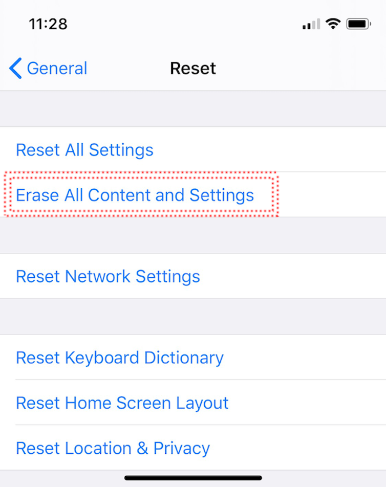 You can erase content and settings (personal information) from an Apple device by going into ‘settings’, ‘general’ and then ‘reset’.